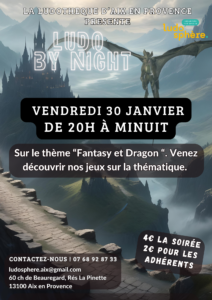 👉 Vendredi 30 Soirée jeux ludo by night. De 20h à minuit. Une soirée sur le thème « Fantasy et Dragon » 🐉 🧙 🧌 🧚