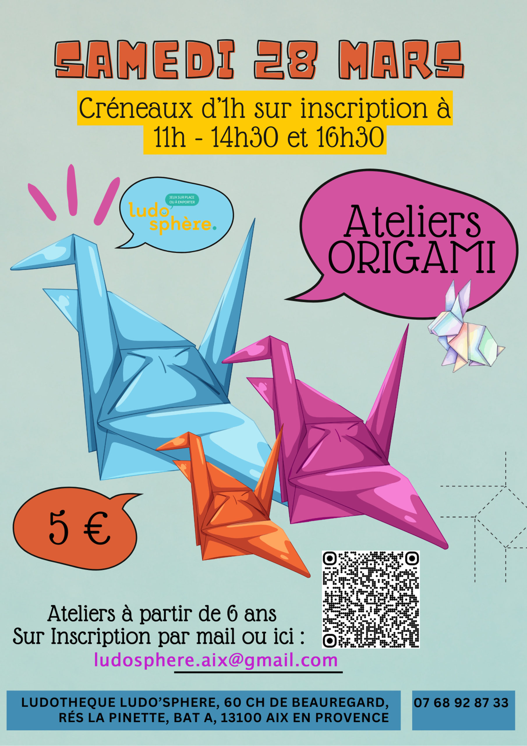 👉  Samedi 28 : LES ATELIERS LUDO : ce mois-ci création d’origami sur le thème du printemps 🌼